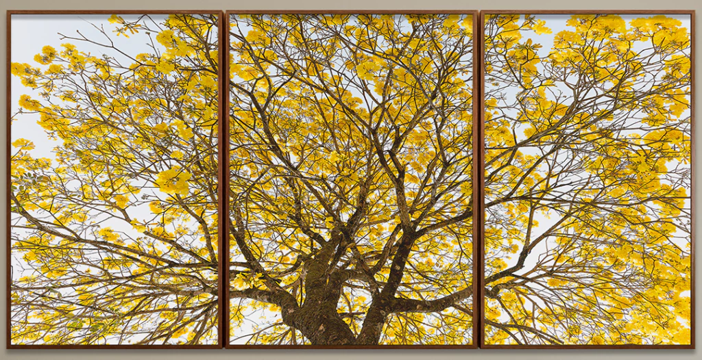 Composição com três quadros: "Florada dos ipês"